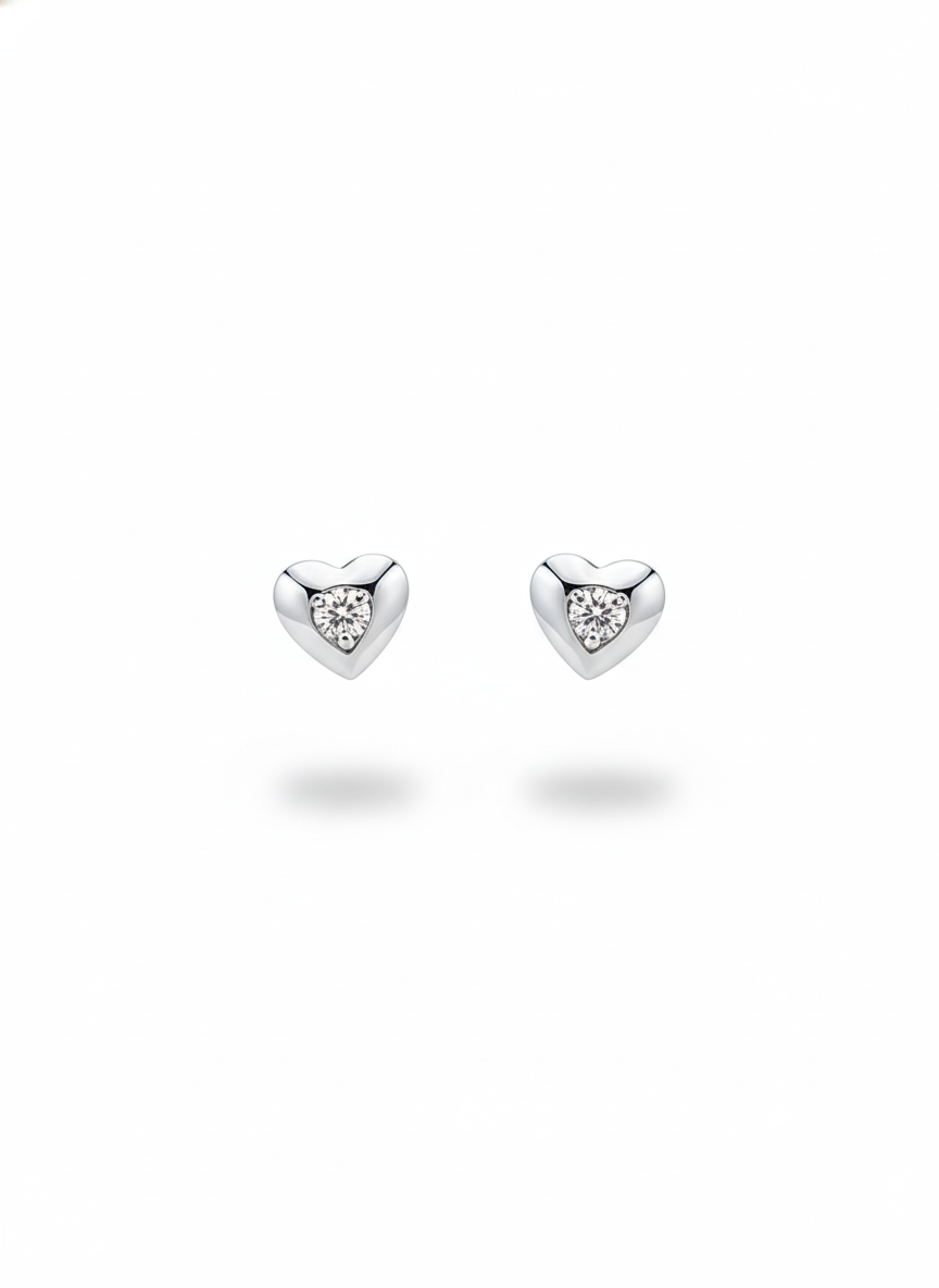 Elegant heart-shaped 925 sterling silver stud earrings featuring a brilliant central stone. Minimal, timeless, and perfect for everyday wear or meaningful gifting.